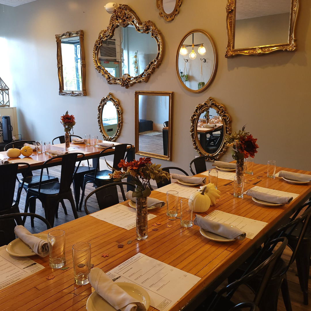 Separated from the Woodshop by a short wall, this semi-private or fully private space accommodates up to 34 seated guests or 50 guests for cocktail-style events.